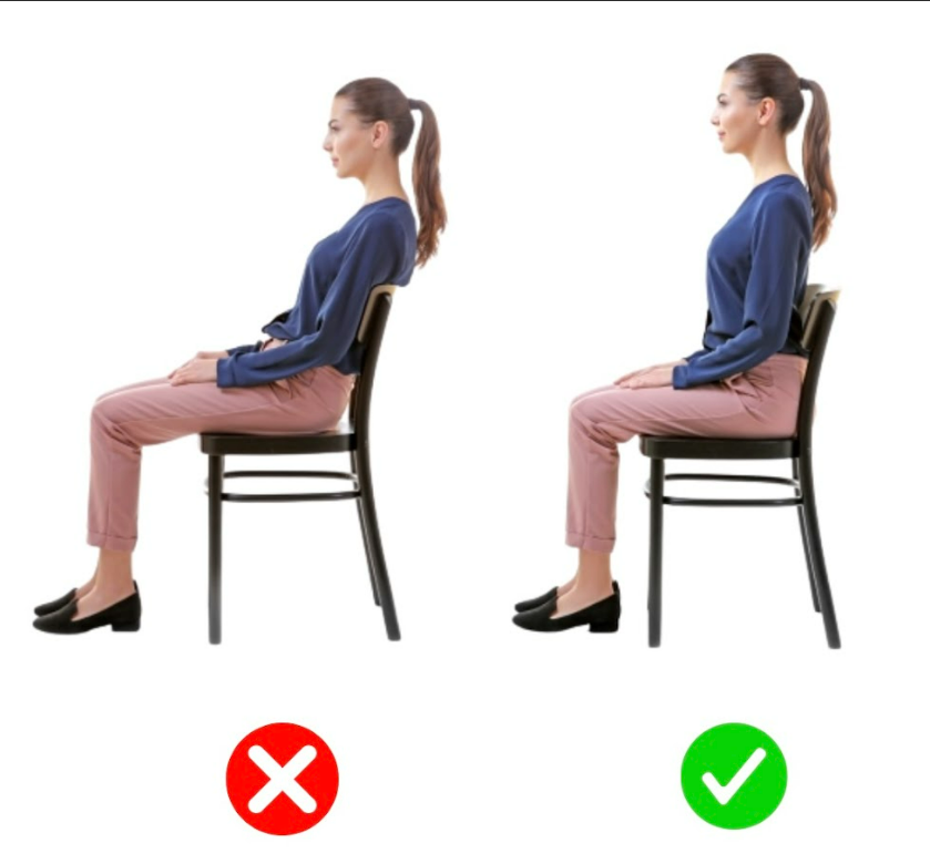 - Ngồi đúng tư thế khi làm việc, không khom lưng.
